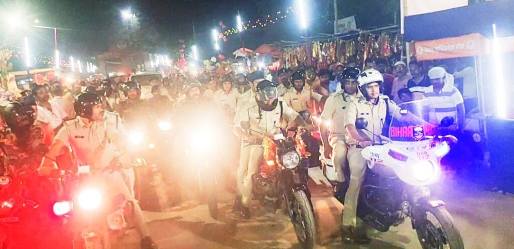 विहार के सहरसा में दुर्गा पूजा को लेकर पुलिस अधिकक्षक के नेतृत्व में निकाली गई फेल्ग मार्च सहरसा एसपी हिमांशू के नेतृत्व में सदर SDPO के साथ सैकड़ों पुलिस जवान बाइक पर सवार होकर थाना चौक से फलैग मार्च करते हुए विभिन्न चैक चौराहों का भ्रमण किया।