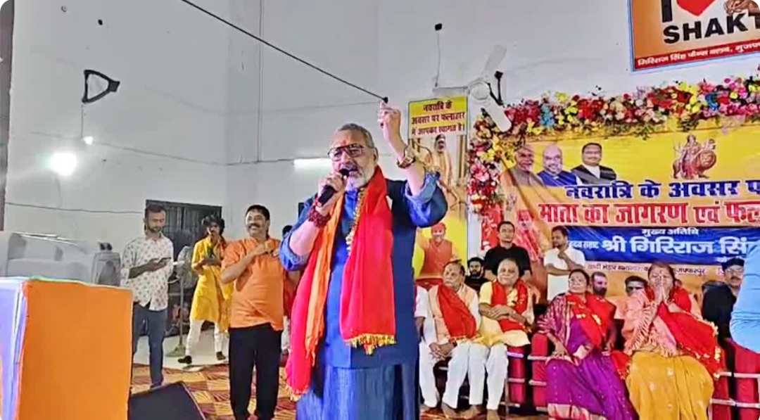 मुजफ्फरपुर: नवरात्रि के पावन अवसर पर शनिवार को मुजफ्फरपुर के खादी भंडार सभागार में आयोजित फलाहार कार्यक्रम में केंद्रीय मंत्री गिरिराज सिंह ने अपने संबोधन से राजनीतिक हलकों में हलचल मचा दी। इस कार्यक्रम का आयोजन नवरात्रि की भावना और हिंदू संस्कृति के संरक्षण के संदेश के साथ किया गया था। मंत्री के स्वागत में अनोखी तैयारी की गई थी—उनके आगमन पर बुलडोजर से फूलों की बारिश कर उनका जोरदार स्वागत किया गया।