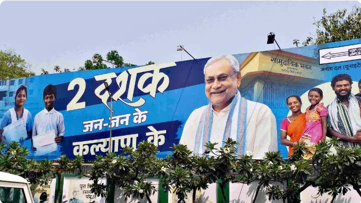 सबसे पहले जेडीयू दफ्तर से ‘2025 से 2030 फिर से नीतीश’ वाला पोस्टर हटा दिया गया। उसकी जगह अब ‘दो दशक जन-जन के नाम’ वाला नया पोस्टर लगाया गया है। इस पोस्टर में नीतीश कुमार के करीब 20-21 वर्षों के कार्यकाल और विकास कार्यों को दिखाया गया है। पार्टी का यह कदम साफ संकेत देता है कि अब फोकस भविष्य के बजाय पिछले कामों को जनता के सामने रखने पर है।