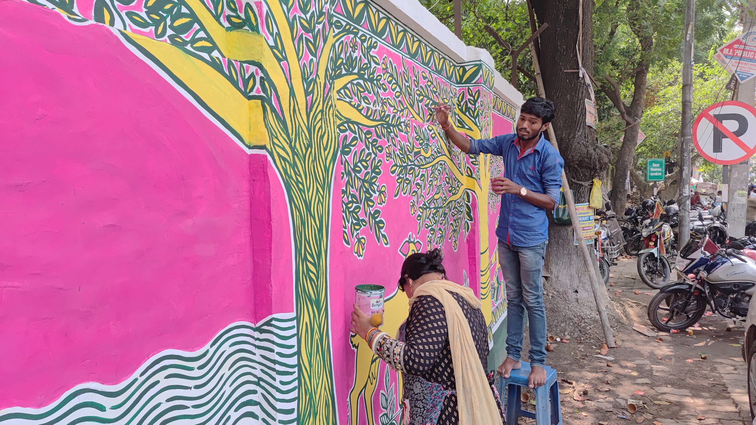 कलाकारों ने अपनी कूची से यह दिखाने की कोशिश की है कि अंधाधुंध पेड़ कटाई कैसे पर्यावरण और जीव-जंतुओं के लिए खतरा बन रही है। साथ ही, पेंटिंग में गंगा डॉल्फिन को भी प्रमुखता से उकेरा गया है, क्योंकि भागलपुर का यह इलाका डॉल्फिन अभ्यारण के लिए प्रसिद्ध है।