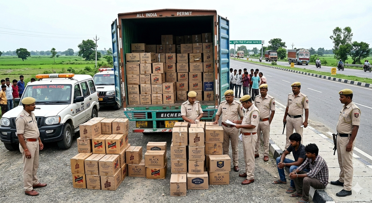 सुपौल: जिले में नशा के खिलाफ चलाए जा रहे विशेष अभियान के तहत सुपौल पुलिस को बड़ी सफलता मिली है। सुपौल जिले के किशनपुर थाना क्षेत्र में एनएच-27 पर वाहन चेकिंग के दौरान भारी मात्रा में विदेशी शराब बरामद की गई है। इस कार्रवाई में दो तस्करों को मौके से गिरफ्तार किया गया है।