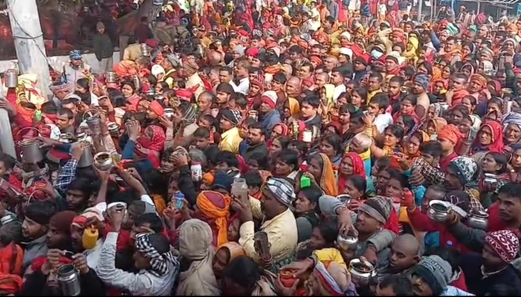 इस दौरान “हर हर बम”, “बोल बम”, “मइया पार्वती” और “बाबा भोलेनाथ” के जयघोष से पूरा क्षेत्र भक्तिमय माहौल में डूबा रहा। हजारों कांवड़िया गंगा जल लेकर देवघर के लिए रवाना होते हुए नजर आए।