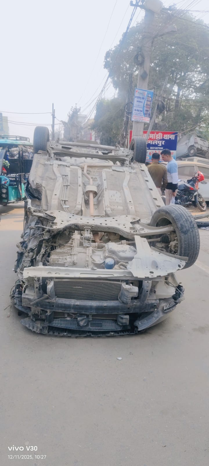 भागलपुर में तिलकामांझी के सामने बड़ा हादसा: बाइक सवार को बचाने में अनियंत्रित हुई कार, 40 मीटर तक पलटी; सॉफ्टवेयर इंजीनियर प्रेम कुमार सुरक्षित