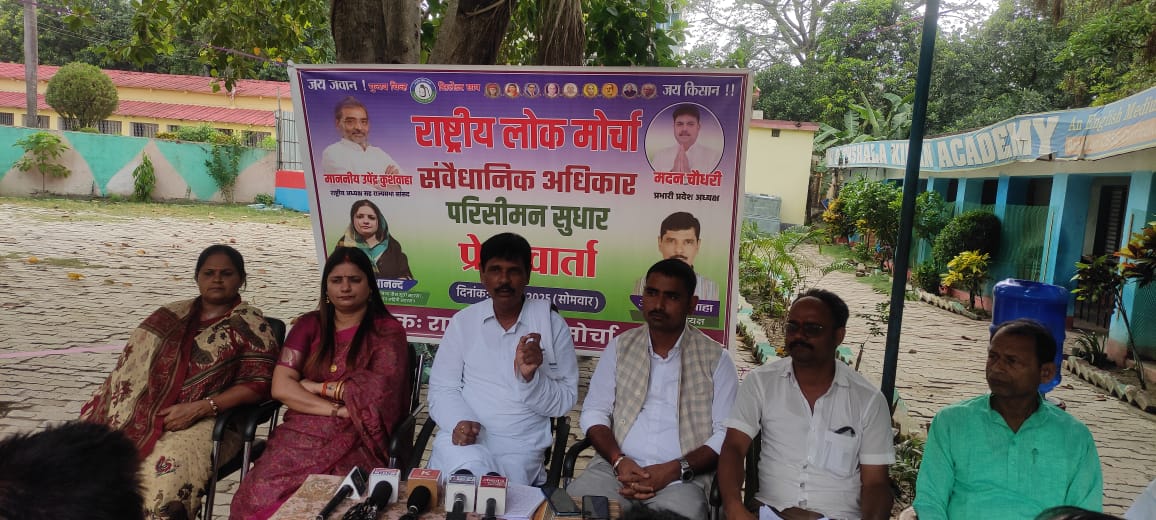 राष्ट्रीय लोक मोर्चा के प्रदेश उपाध्यक्ष श्री अंगद कुशवाहा ने आज सहरसा जिला परिषद प्रांगण में एक महत्वपूर्ण प्रेस वार्ता कर “संवैधानिक अधिकार – परिसीमन सुधार” अभियान को एक व्यापक जनांदोलन में बदलने की घोषणा की। उन्होंने कहा कि जब तक बिहार और उत्तर भारत को जनसंख्या के अनुपात में न्यायपूर्ण राजनीतिक प्रतिनिधित्व नहीं मिलता, तब तक यह संघर्ष जारी रहेगा। श्री कुशवाहा ने यह भी स्पष्ट किया कि यह आंदोलन केवल राजनीतिक नहीं, बल्कि संवैधानिक और सामाजिक न्याय से जुड़ा है।