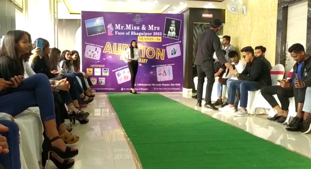 भागलपुर में आज मिस्टर मिस एंड मिसेज फेस ऑफ भागलपुर सीजन फोर का ऑडिशन स्थानीय होटल में आयोजित की गई, इस कार्यक्रम में बिहार के विभिन्न जिलों के प्रतिभागियों ने हिस्सा लिया जिसमें भागलपुर के अलावे नवगछिया बांका पूर्णिया कटिहार समेत कई जिलों के युवा युवती एवं महिलाओं ने अपना जौहर दिखाया ,