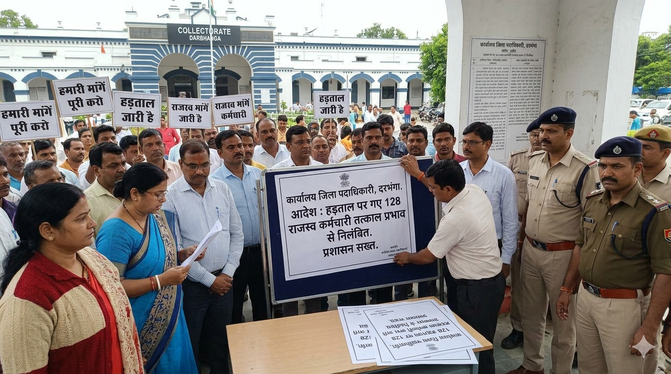 दरभंगा में बड़ी कार्रवाई: हड़ताल पर गए 128 राजस्व कर्मचारी निलंबित, प्रशासन सख्त