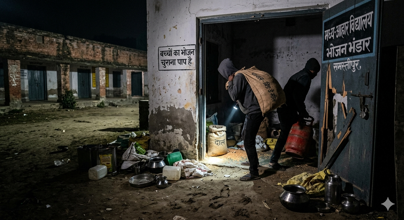बिहार के समस्तीपुर जिले से एक बेहद शर्मनाक मामला सामने आया है, जहां चोरों ने बच्चों के भोजन पर ही हाथ साफ कर दिया। उजियारपुर प्रखंड के उत्क्रमित मध्य विद्यालय चंदौली में चोरों ने स्कूल का ताला तोड़कर मिड-डे-मील से जुड़ी सामग्री और अन्य सामान चोरी कर लिया। इस घटना के बाद बच्चे भूखे पेट ही स्कूल से घर लौटने को मजबूर हो गए।