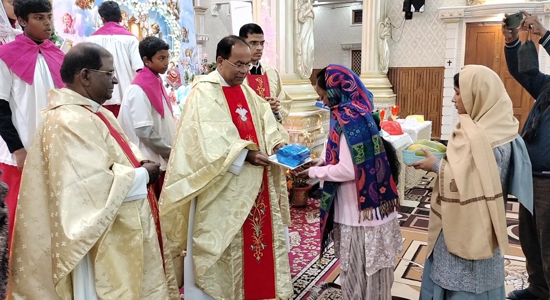 इस खास मौके पर प्रभु यीशु के दर्शन के बाद श्रद्धालुओं ने फादर को उपहार भी भेंट किए। चर्च परिसर में कैरोल गीतों की मधुर धुन गूंजती रही, जिससे पूरा वातावरण भक्तिमय हो गया। बच्चों और युवाओं में खासा उत्साह देखने को मिला। सांता क्लॉज़ की वेशभूषा में लोग बच्चों को उपहार देते नजर आए, जिससे उनके चेहरे खुशी से खिल उठे।