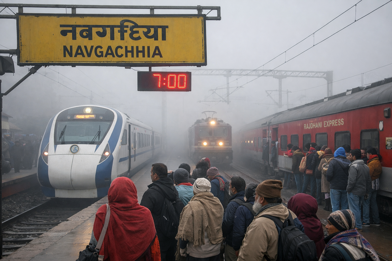 घने कोहरे के कारण नवगछिया स्टेशन से होकर गुजरने वाली कई प्रमुख ट्रेनें घंटों विलंब से पहुंचीं, जिससे यात्रियों को भारी परेशानी का सामना करना पड़ा। सुबह से ही कोहरे का असर रेल परिचालन पर देखने को मिला। दृश्यता कम होने के कारण ट्रेनों की रफ्तार घटा दी गई, जिसका सीधा असर समय-सारिणी पर पड़ा।