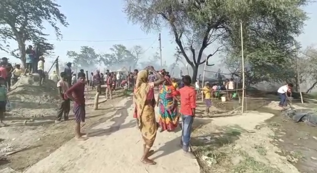 भागलपुर के नाथनगर थाना क्षेत्र के शंकरपुर गांव में अचानक आग लग गई। आग तेजी के साथ पूरे गांव में फैल गई। जिससे गांव के दर्जन भर से ज्यादा घर जलकर राख हो गए। वही घरों में रखा सामान भी पूरी तरीके से जल गया। अनाज, कागजात, रुपए,ट्रैक्टर सहित लोगों का सारा आशियाना जलकर थोड़ी ही देर में राख हो गया।