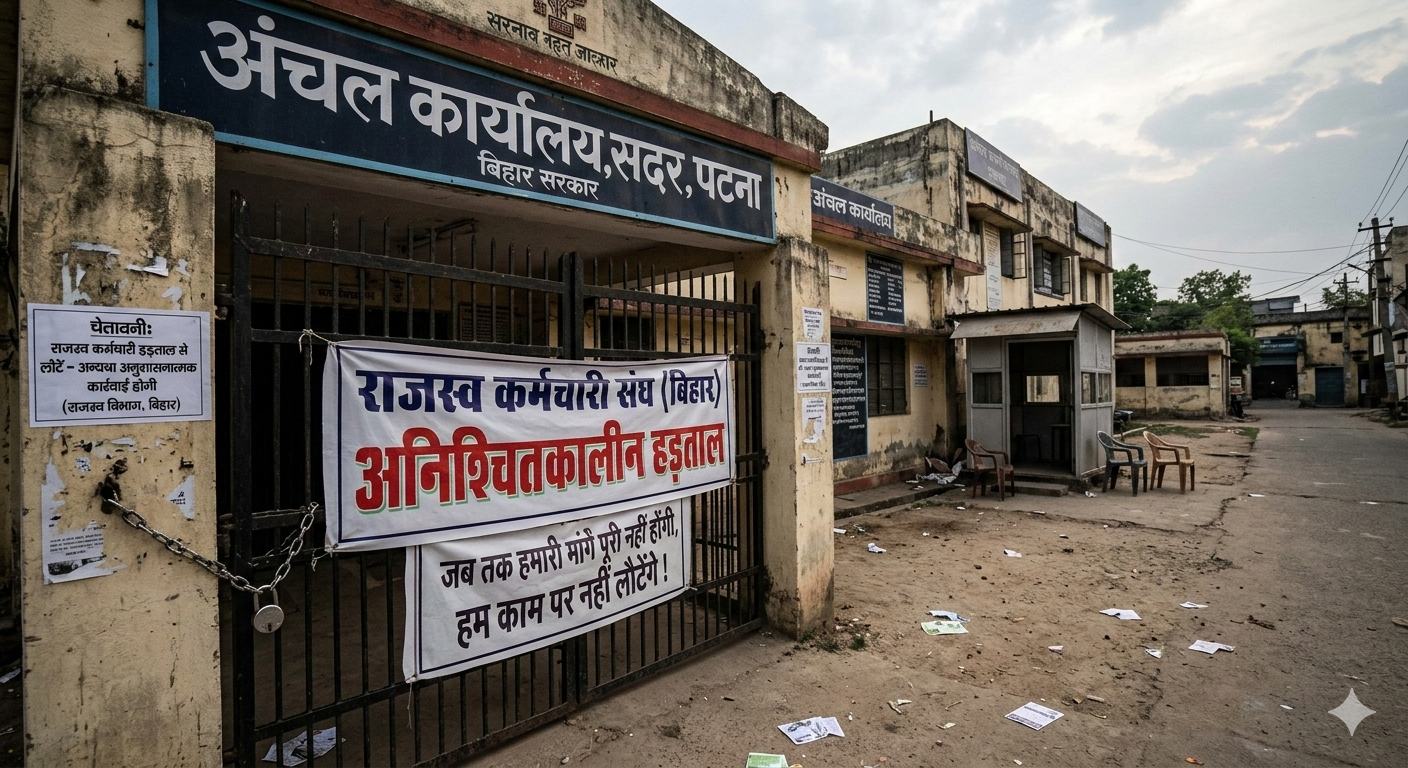 बिहार में राजस्व सेवा से जुड़े कर्मचारियों की हड़ताल का असर अब अंचल कार्यालयों के कामकाज पर साफ तौर पर दिखाई देने लगा है। अपनी 11 सूत्री मांगों को लेकर कर्मचारी काम से दूर रहकर विरोध जता रहे हैं, जिसके कारण जमीन से जुड़े कई महत्वपूर्ण कार्य प्रभावित हो गए हैं। राज्य के कई जिलों में दाखिल-खारिज, जमाबंदी सुधार, जमीन मापी, परिमार्जन और अन्य राजस्व संबंधी सेवाओं की रफ्तार धीमी पड़ गई है।