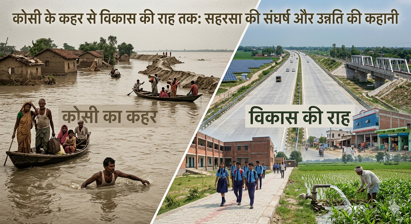 सहरसा की कहानी इतिहास, संघर्ष और विकास की एक ऐसी यात्रा है, जो समय के साथ लगातार आगे बढ़ती रही है। कोसी अंचल में बसा यह जिला प्राचीन काल में मिथिला का हिस्सा था, जहां ज्ञान, संस्कृति और परंपरा की गहरी जड़ें रही हैं। कहा जाता है कि “सहरसा” नाम संस्कृत के “सहर्ष” शब्द से निकला है, जिसका अर्थ होता है आनंद या खुशी का स्थान।