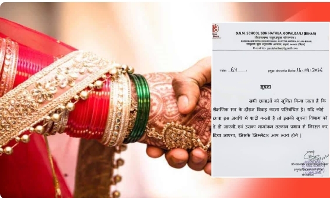 गोपालगंज: बिहार के गोपालगंज जिले से एक हैरान करने वाला मामला सामने आया है, जहां हथुआ स्थित सरकारी जीएनएम (जनरल नर्सिंग एंड मिडवाइफरी) ट्रेनिंग स्कूल की प्राचार्या द्वारा छात्राओं के लिए जारी एक आदेश ने विवाद खड़ा कर दिया है। इस आदेश में कहा गया था कि तीन साल के शैक्षणिक सत्र के दौरान छात्राएं शादी नहीं कर सकतीं। यदि कोई छात्रा इस अवधि में विवाह करती है तो उसका नामांकन तत्काल प्रभाव से रद्द कर दिया जाएगा और उसे संस्थान से निष्कासित कर दिया जाएगा।