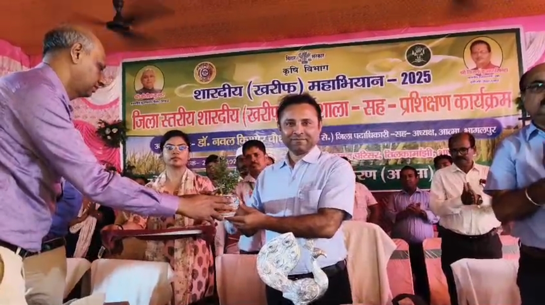 भागलपुर, बिहार – कृषि के क्षेत्र में नवाचार और उत्पादकता को बढ़ावा देने के उद्देश्य से भागलपुर में शारदीय खरीफ महाभियान 2025 के अंतर्गत एक दिवसीय कार्यशाला सह प्रशिक्षण कार्यक्रम का आयोजन किया गया। यह कार्यक्रम कृषि भवन परिसर में आयोजित किया गया, जिसकी मेज़बानी कृषि प्रौद्योगिकी प्रबंध अभिकरण (ATMA) ने की। कार्यक्रम का उद्घाटन भागलपुर के जिलाधिकारी डॉ. नवल किशोर चौधरी और जिला कृषि पदाधिकारी के द्वारा संयुक्त रूप से किया गया।