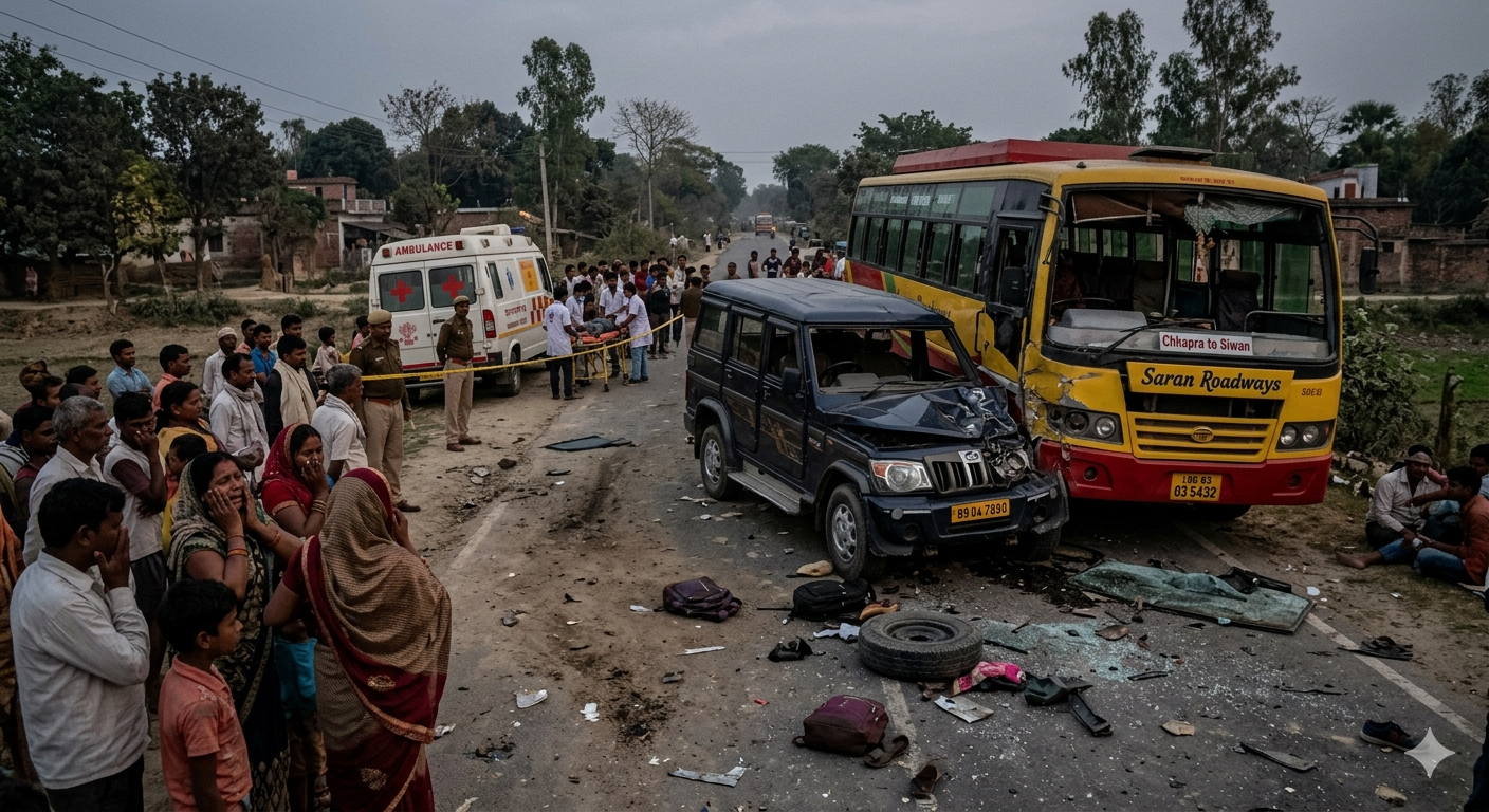 बिहार के सारण जिले में एक दर्दनाक सड़क हादसे में दो लोगों की मौत हो गई, जबकि चार अन्य लोग घायल हो गए। यह घटना तरैया थाना क्षेत्र की है।