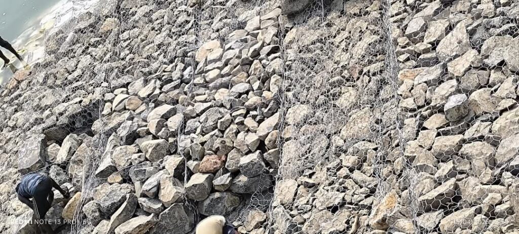 जहाँ मजबूत और भारी पत्थरों का इस्तेमाल होना चाहिए, वहाँ छोटे और कमजोर पत्थर लगाए गए हैं। ये पत्थर तेज बहाव में एक पल भी टिक नहीं सकते। मरम्मत के नाम पर केवल स्टील के तारों का सहारा लिया गया है – न कोई ठोस नींव, न कोई स्थायी समाधान।