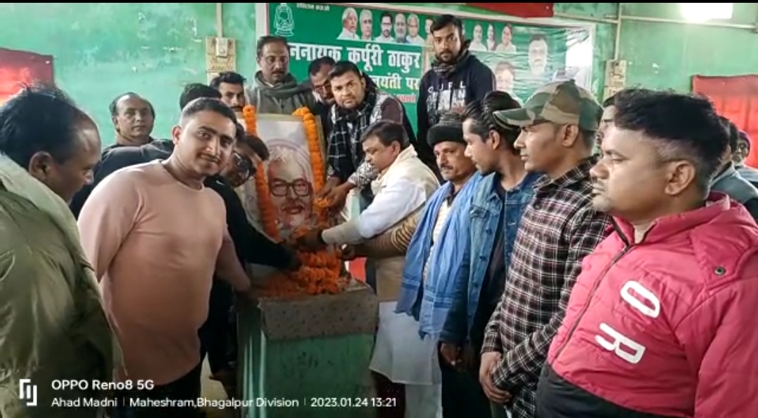 पीरपैंती नगर पंचायत में कर्पूरी ठाकुर की जयंती मनाई गई,बिहार के पूर्व मुख्यमंत्री व जननायक कर्पूरी ठाकुर का 99 वां जन्मोत्सव धूमधाम के साथ मनाया गया। राष्ट्रीय जनता दल के पीरपैंती नगर में नगर अध्यक्ष जानिशार असलम की अध्यक्षता में जयंती मनाया गया।