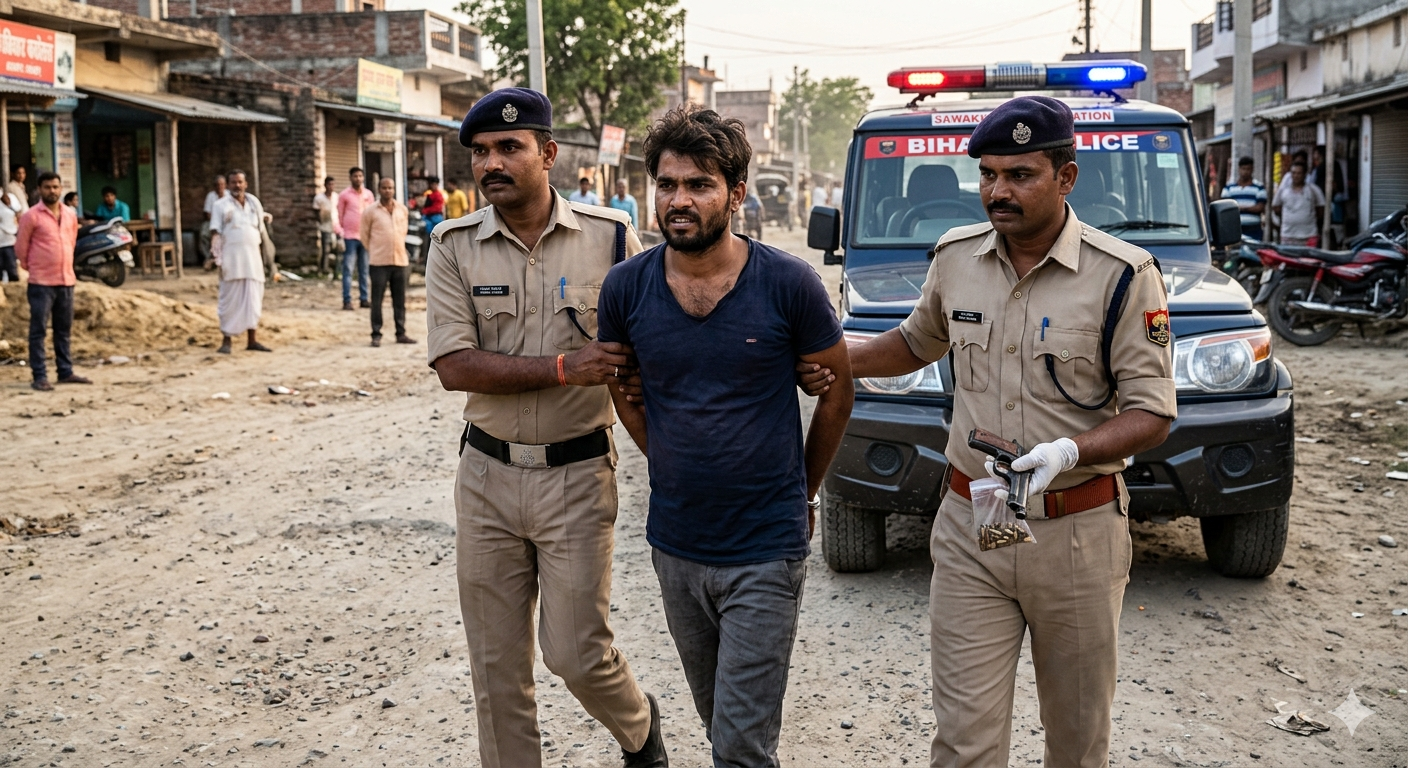 जानकारी के अनुसार, 17 अप्रैल 2026 को बैजनाथपुर थानाध्यक्ष को गुप्त सूचना मिली कि एक वांछित अपराधी पतरघट थाना क्षेत्र के धबौली गांव स्थित आम के बगीचे में छिपा हुआ है। सूचना की पुष्टि के बाद पतरघट और बैजनाथपुर थाना की संयुक्त टीम ने त्वरित कार्रवाई करते हुए इलाके की घेराबंदी की और छापेमारी कर आरोपी को धर दबोचा।