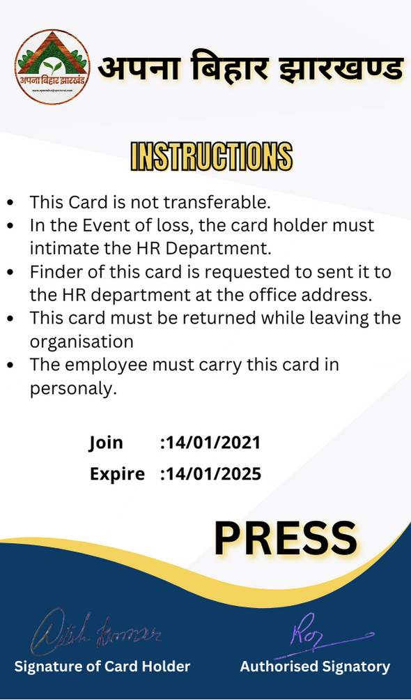 - This card must be returned while leaving the organisation