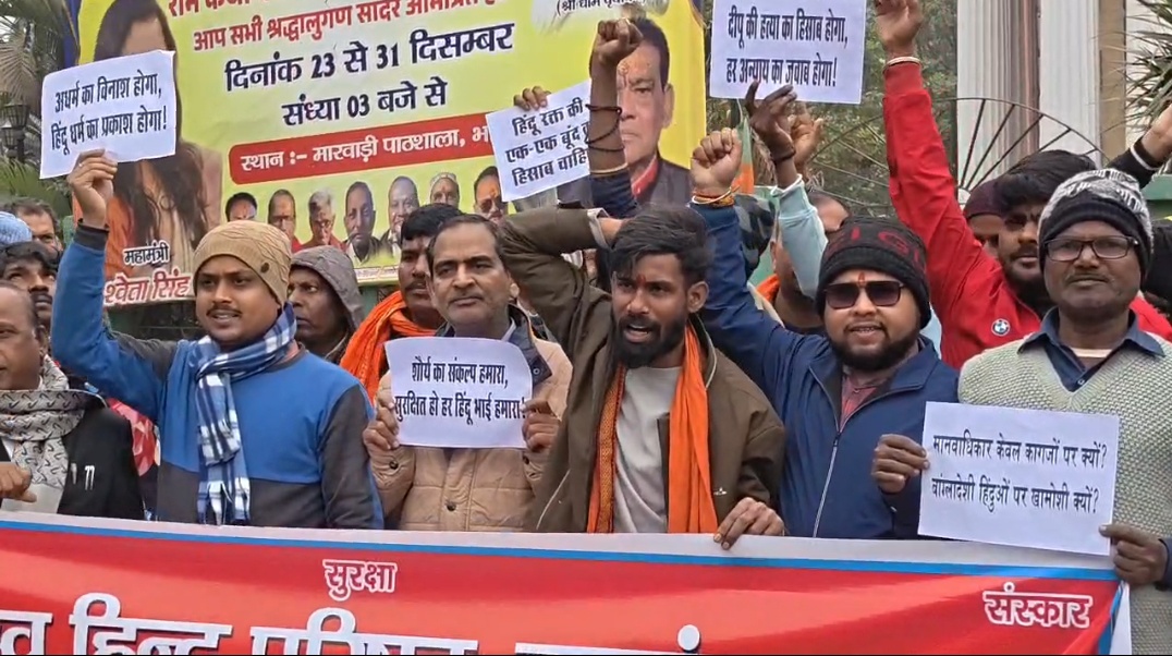 बांग्लादेश में हिंदू युवक दीपू चंद्र दास की हत्या पर देशभर में आक्रोश, भागलपुर में सड़कों पर उतरे हिंदू संगठन