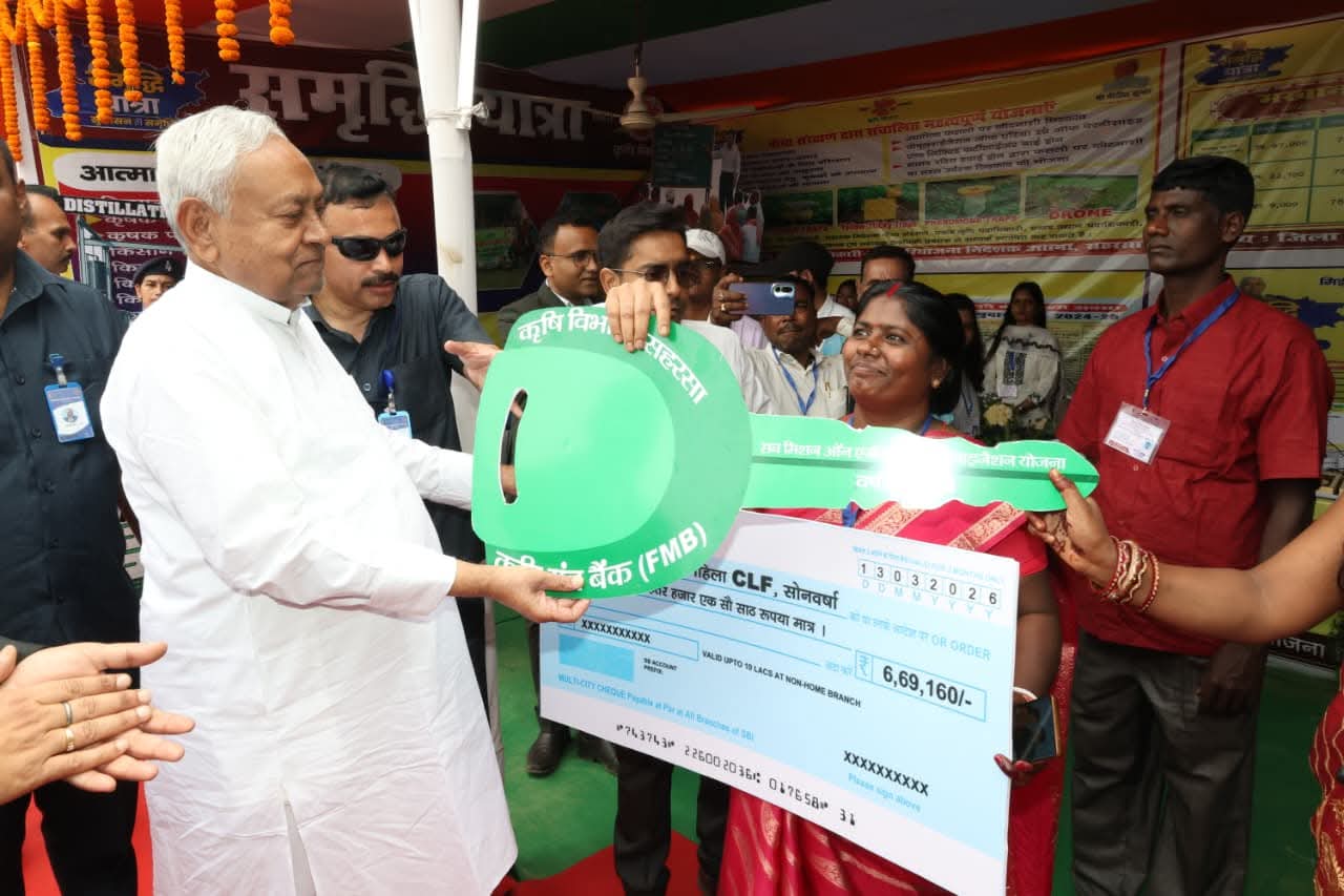 इस अवसर पर मुख्यमंत्री ने विभिन्न योजनाओं के लाभार्थियों के बीच चेक का वितरण भी किया। उन्होंने लाभुकों को प्रोत्साहित करते हुए कहा कि सरकार की योजनाओं का सही तरीके से लाभ उठाकर आत्मनिर्भर बनने की दिशा में आगे बढ़ें।