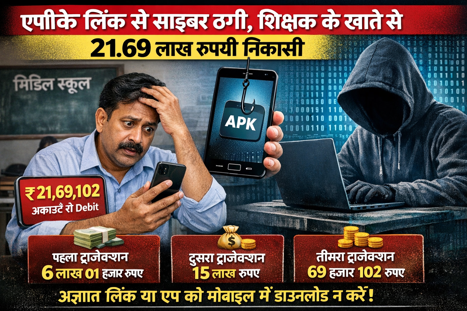 एपीके लिंक से साइबर ठगी, शिक्षक के खाते से 21.69 लाख की निकासी