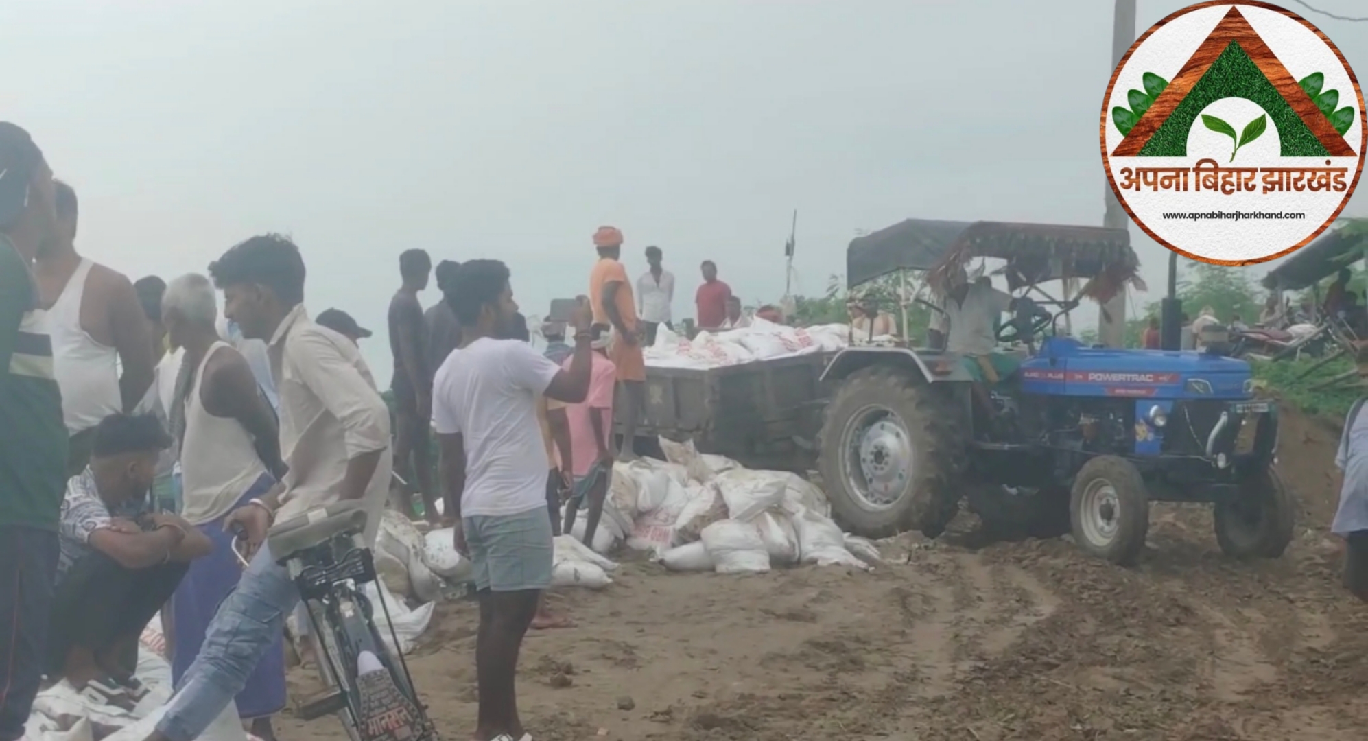 इस्माईलपुर-बिंद टोली तटबंध में भीषण कटाव, मरम्मत कार्य युद्धस्तर पर शुरू