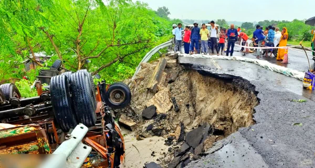 विक्रमशिला सेतु पर बस खराब होने से घंटों जाम, पैदल पार करते दिखे लोग