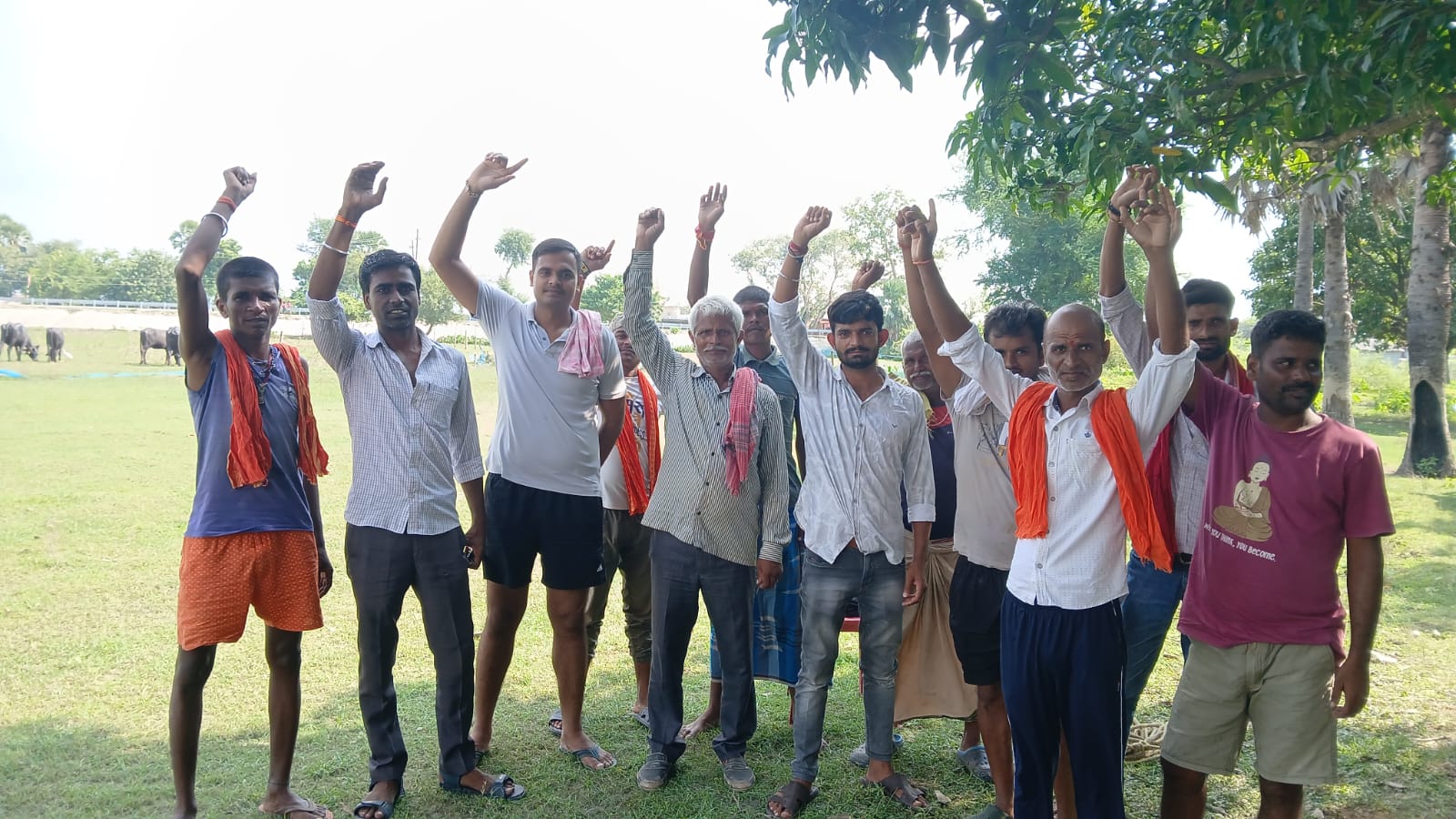 कमरगंज में किसानों की जमीन पर जलासय का भूमि पूजन, किसानों ने रोक लगाई – मुआवजा और कोर्ट आदेश का हवाला