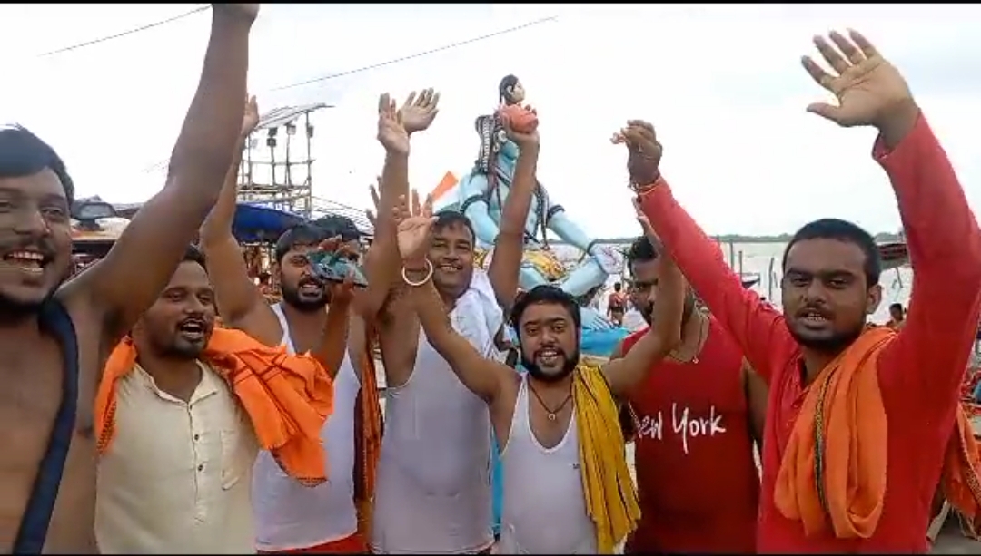 भागलपुर सुलतानगंज के अजगैविनाथ धाम में श्रावणी मेला के 24 वें दिन 85 किलो का शिव जी साधना लिंन का विशाल कांवर प्रतिमा कलकत्ता हावड़ा के कांवरिया पहुंचे| इस दौरान कांवरिया ने उतर वाहनी गंगा में स्नान कर पुजा पाठ करते हुए देवघर बैधनाथ धाम के लिए रवाना हुए|