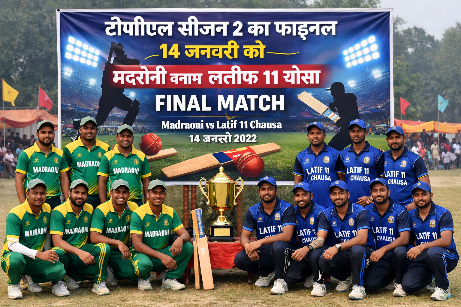 वहीं, दूसरे सेमीफाइनल मुकाबले में लतीफ 11 चौसा की टीम ने जीत दर्ज कर पहले ही फाइनल में जगह बना ली थी। अब 14 जनवरी को मदरौनी और लतीफ 11 चौसा के बीच फाइनल मुकाबला खेला जाएगा, जिसे लेकर खिलाड़ियों के साथ-साथ क्रिकेट प्रेमियों में भी खासा उत्साह देखा जा रहा है। आयोजकों के अनुसार फाइनल मैच को भव्य रूप देने की तैयारियां शुरू कर दी गई हैं।