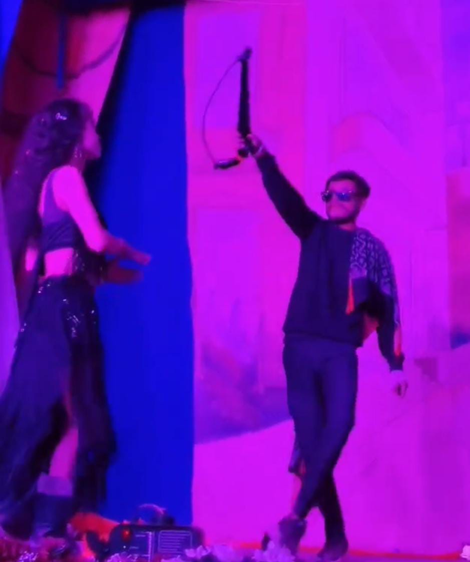 प्राप्त जानकारी के अनुसार, गांव में बाहर से नर्तकी बुलाकर आर्केस्ट्रा कार्यक्रम का आयोजन किया गया था। कार्यक्रम के दौरान गांव का ही एक युवक कथित रूप से शराब के नशे में मंच पर चढ़ गया। उसके हाथ में अवैध हथियार था, जिसे वह खुलेआम लहराते हुए नर्तकी के साथ डांस करता नजर आया। वायरल वीडियो में युवक की हरकतें साफ दिखाई दे रही हैं, जिससे क्षेत्र में कानून-व्यवस्था को लेकर गंभीर सवाल उठ रहे हैं।
