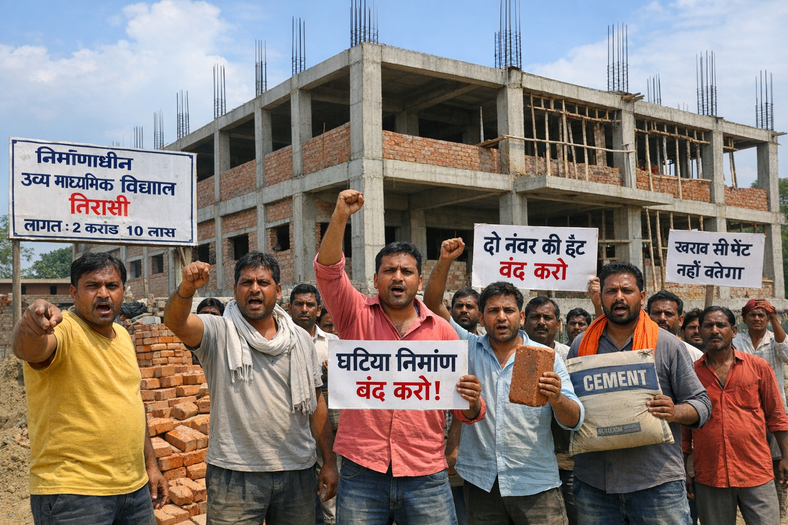ग्रामीणों ने बताया कि शिक्षा विभाग की ओर से बिहार शिक्षा परियोजना के तहत उच्च माध्यमिक विद्यालय तिरासी में जी प्लस टू (G+2) स्ट्रक्चर का भवन लगभग दो करोड़ 10 लाख रुपये की लागत से बनाया जा रहा है। इस निर्माण कार्य की जिम्मेदारी पटना की सरोज कंस्ट्रक्शन को दी गई है। लेकिन शुरुआत से ही निर्माण की गुणवत्ता को लेकर सवाल उठ रहे हैं।